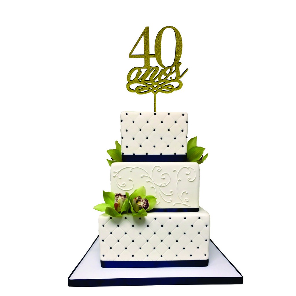 Bolo 15cm de Diâmetro por 10cm de altura. tema 40 anos Quarentena.
